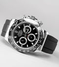 Cosmograph Daytona, reference 126519LN, with a black dial and an Oysterflex bracelet.